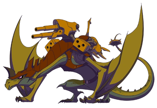 The Tatsurion-hunting bounty hunter team of Burnclaw and Branca ride Chaotic Skyterror in pursuit of their quarry. Chaotic Skyterror isn't just transportation; this attack raptor is armed to the teeth!
