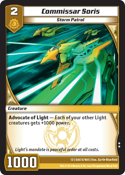 | Card Abilities: | Advocate of Light — Each of your other Light creatures gets +1000 power. |