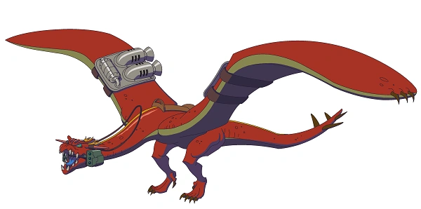 Draglide is armed with head-mounted rocket launchers, making it a strong air-to-air combat creature. However, Draglide's most often used skill is it's enormous speed. When this attack raptor's normal flight speed isn't fast enough, it can kick in booster engines for an extra-speedy burst.