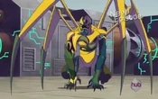 In the episode The Rising, Part 1, Saguru uses Humonculon to break open his helmet and free Tatsurion. Aqua Seneschal intervenes and shoots Saguru, Tatsurion, and Homonculon with the Evolution Serum, where Humonculon's evolution binds him to Saguru. When Ray enters The Choten's hideout, he finds Saguru in his hybrid state until The Choten arrives. Saguru rises to his feet and helps Ray fight a mind-controlled Tatsurion the Unchained. While Ray tries to get through to Tatsurion, Saguru deals with The Choten until The Choten uses the Shield of Unity to order Humonculon to throw Saguru back into the cargo bay. Crashing to the cargo bay floor, Humonculon is banished to the creature realm, taking Saguru with him, since they are bound together.